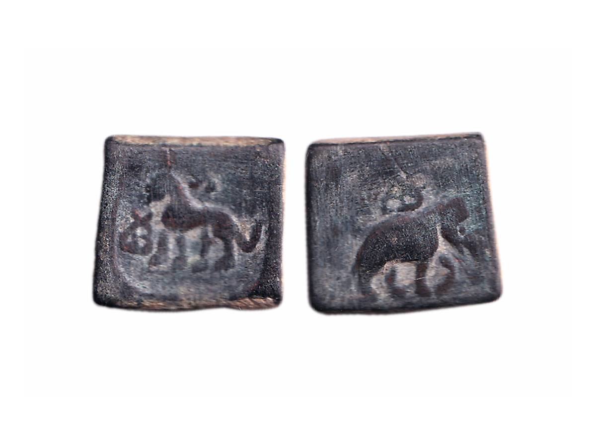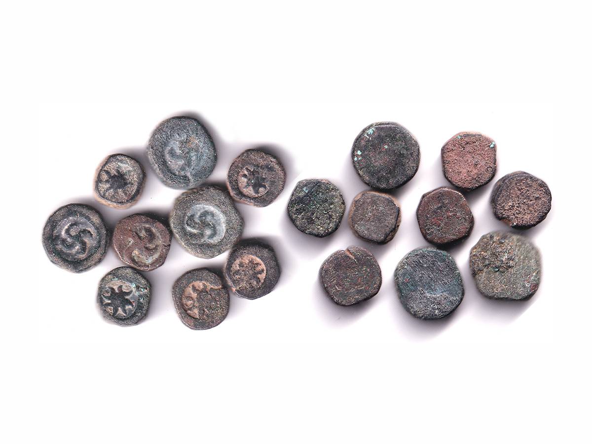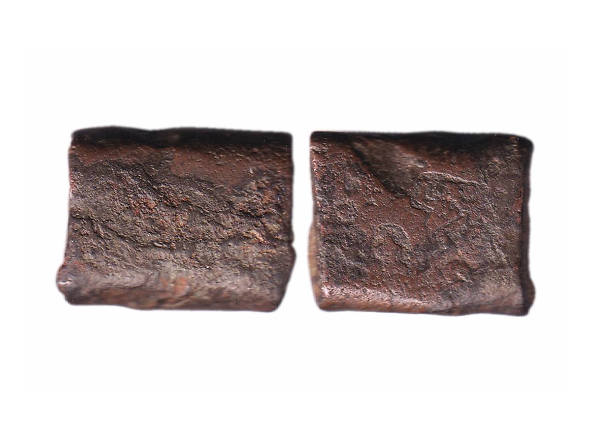 Post-Mauryan (c. 200-150 BC), Taxila Region, Uninscribed type, Copper Unit (9), Obv: Swastika and four crescent symbol as a single punch respectively, Rev: Blank. (Pieper # 1453 & 1457). Very Fine to Extremely Fine...