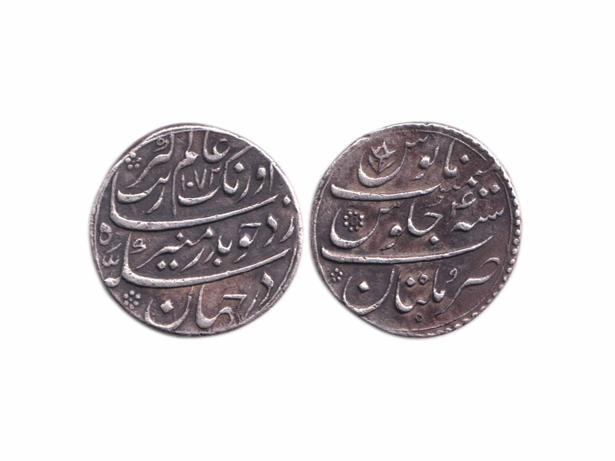 Aurangzeb, Silver Rupee, 11.38g, Multan Mint, AH 1072, RY 4, Badr-e-munir type, complete die impression on both sides. (KM # 300.63). Extremely Fine.